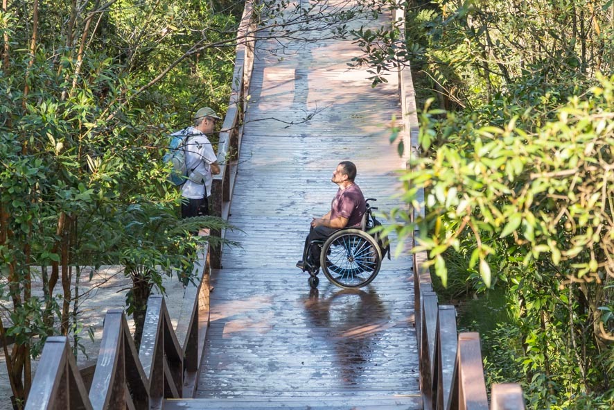 Plataformas, elevadores, piso tátil, rampas de acesso, bondinho em plano inclinado, corrimões, assim como a Trilha Sensorial, permitem que cadeirantes, deficientes visuais e pessoas com baixa locomoção e necessidades especiais possam desfrutar do convívio com a natureza.