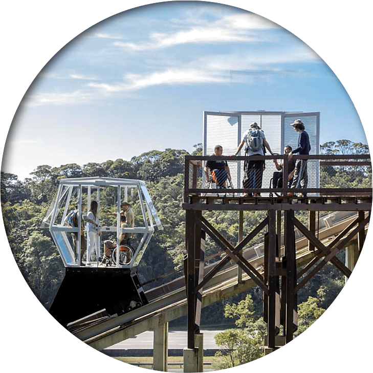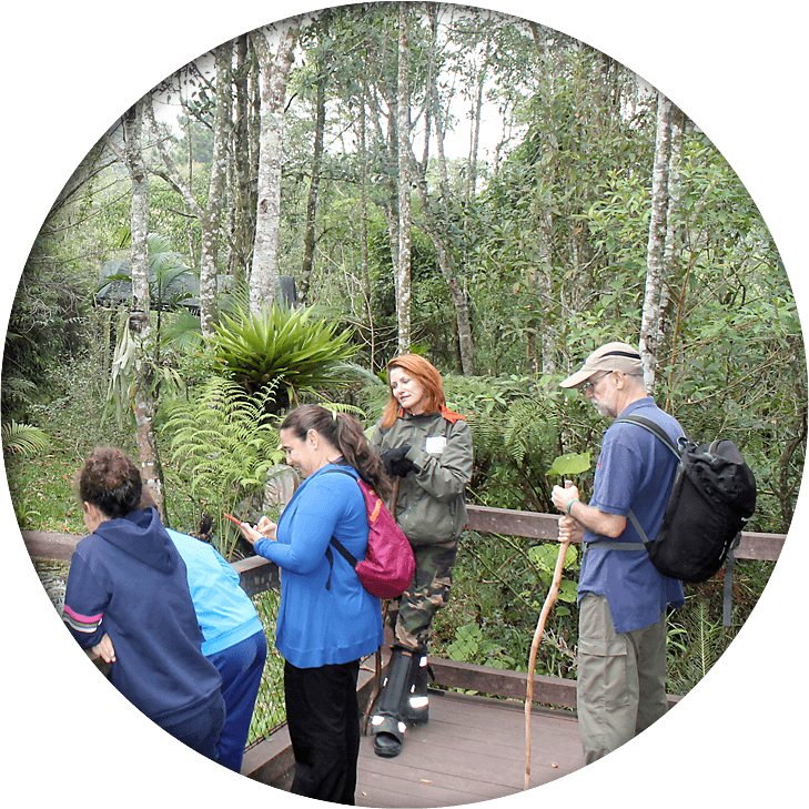 Para os mais dispostos, é possível fazer o percurso de volta por trilhas de baixa dificuldade em meio à mata. Plataformas e rampas de acesso permitem às pessoas na terceira idade desfrutarem do convívio com a natureza. E todo esse percurso será conduzido por nossos monitores preparados para apoiar o visitante nesse ambiente diferenciado.