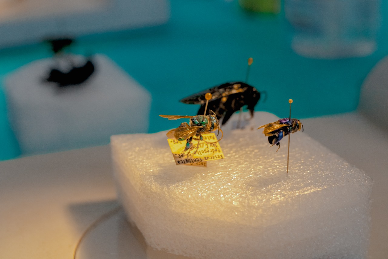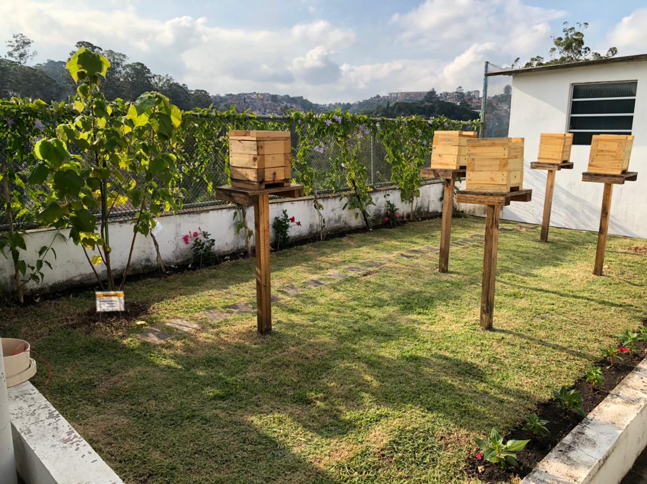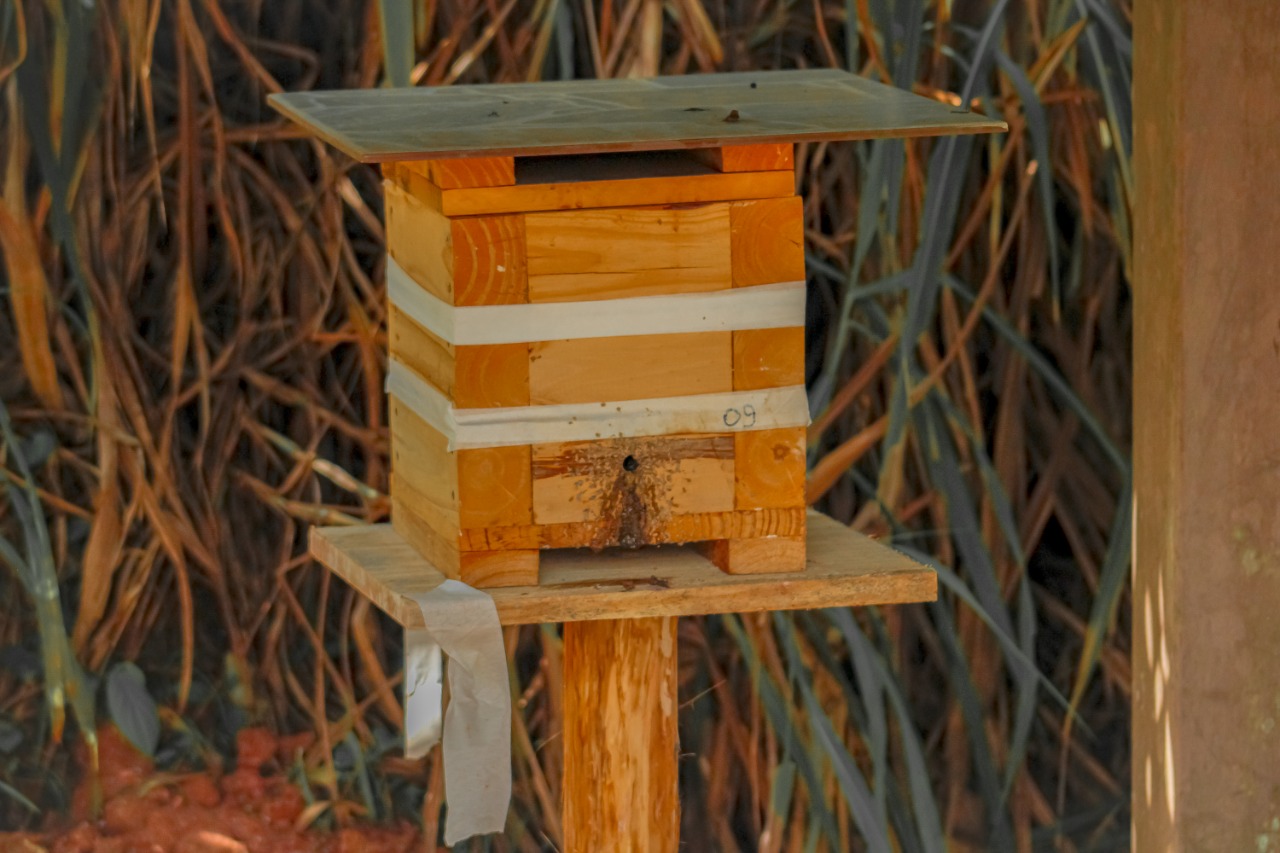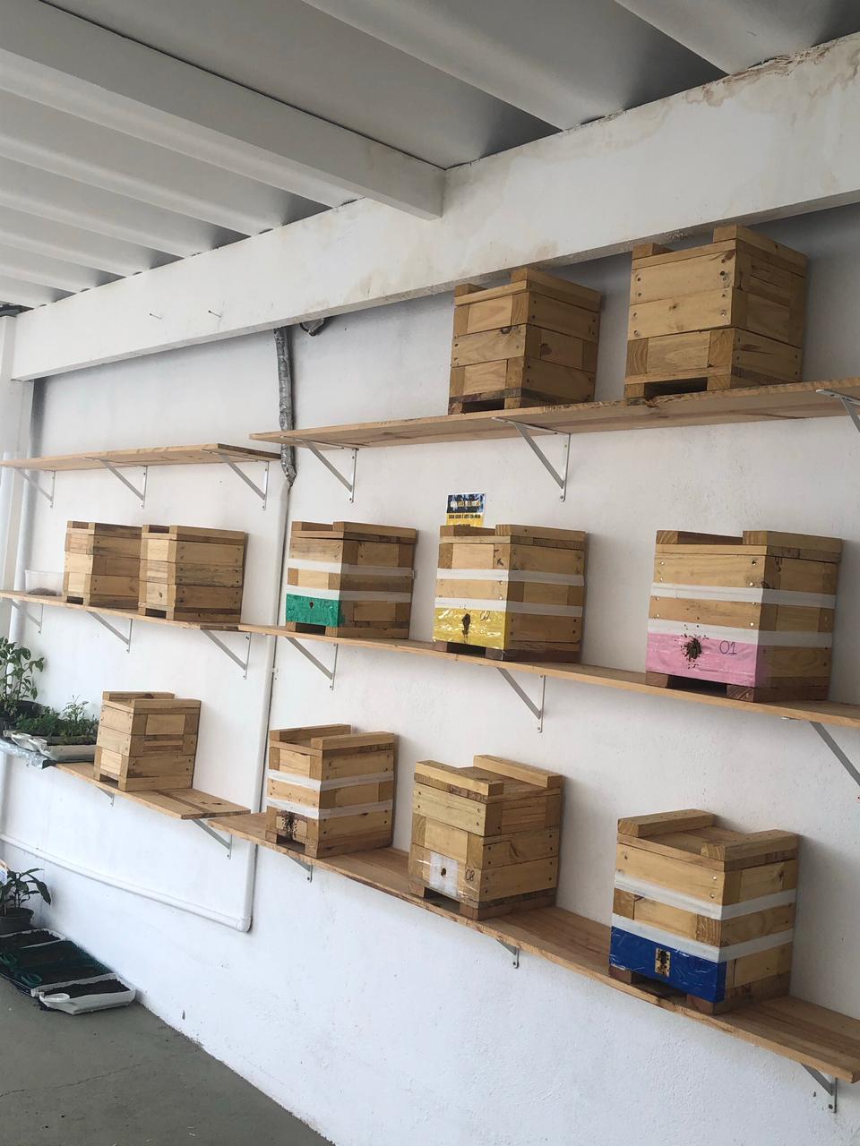 Por meio de colmeias, feitas em caixas com laterais em acrílico transparente, pode se ver três colônias com diferentes tipos de abelhas trigoniformes. Isso possibilitou aos alunos enxergar a estrutura interna, como são construídos os favos, o formato, a disposição no ninho, os potes de alimento e a diferença entre as espécies na alimentação e fabricação do mel.