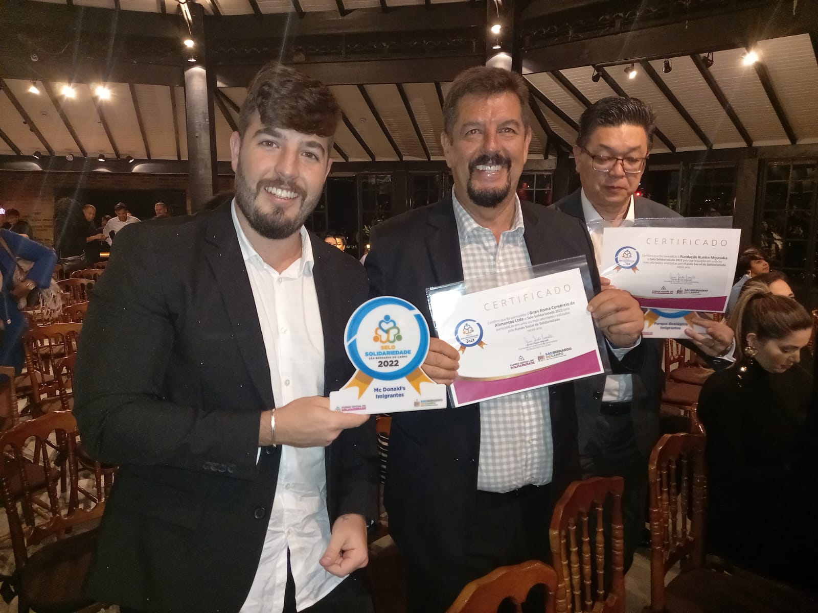 Em evento repleto de emoção e em clima de confraternização de fim de ano o Parque Ecológico Imigrantes (PEI) mais uma vez foi homenageado com o Selo Solidariedade, concedido pelo Fundo Social de Solidariedade de São Bernardo do Campo. A chancela, este ano, referendou também o trabalho do empresário e franqueado da rede McDonald’s, Mario Eduardo Pereira Martins Junior, e do seu filho Matheus Tunhollo Martins que, em parceria com o PEI, propiciaram momentos de alegria a pessoas carentes oferecendo ao final dos passeios no parque os lanches da rede de lanchonetes gratuitamente.