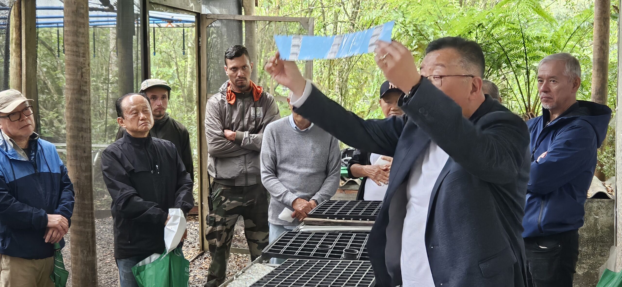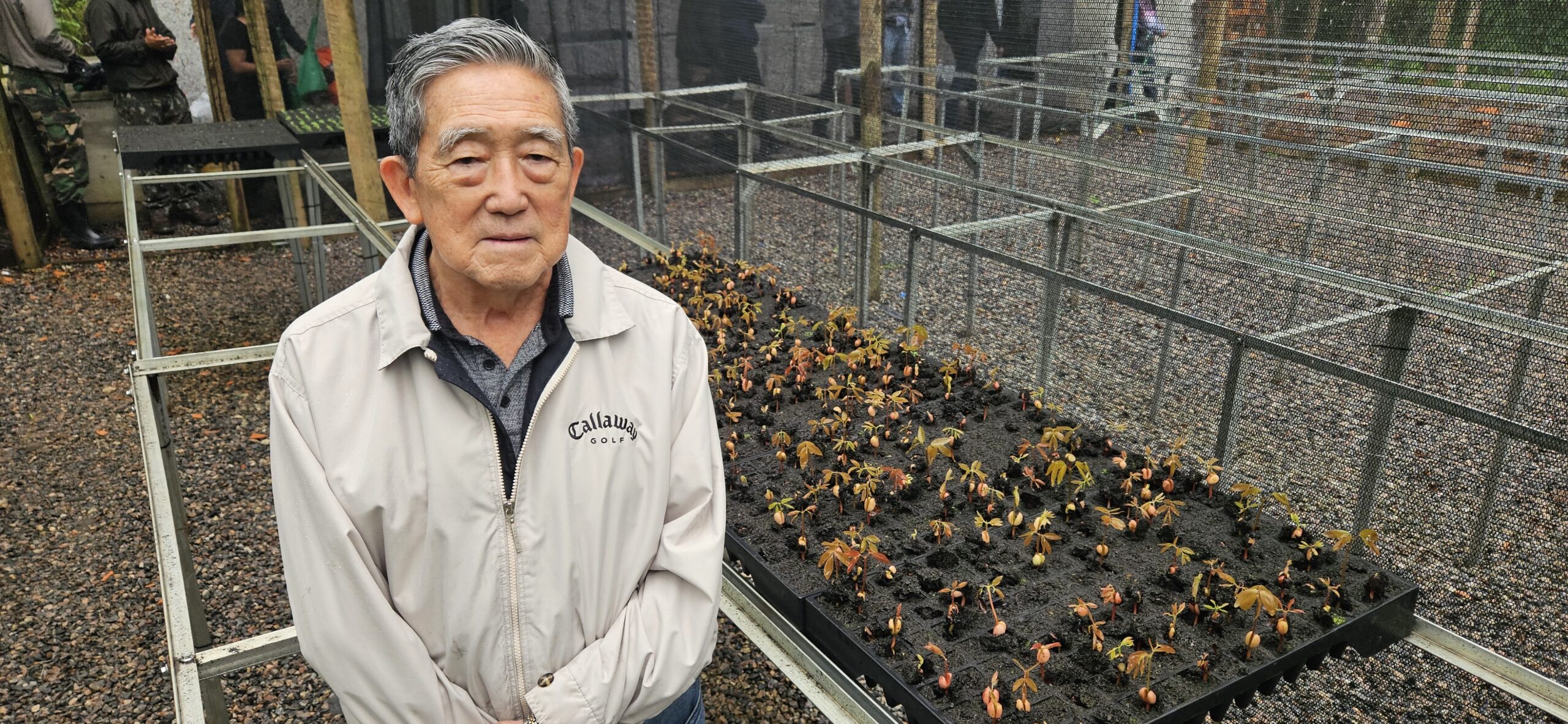 Asakura detalha as ferramentas a serem utilizadas no viveiro de mudas, como a identificação das árvores por radiofrequência (RFID), fornecida pela Sato do Brasil; os sacos protetores de raízes biodegradáveis de origem fóssil, produzidos pela CBS-ELOS; e a câmera hiperespectral, que será acoplada a um drone para medir a taxa de fotossíntese e monitorar o crescimento das mudas.