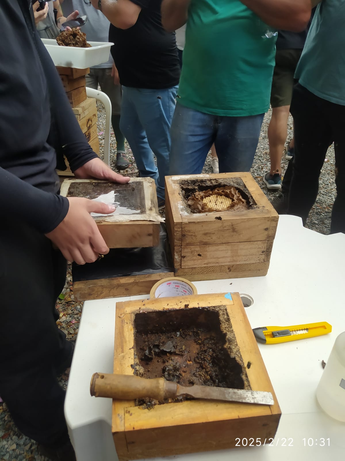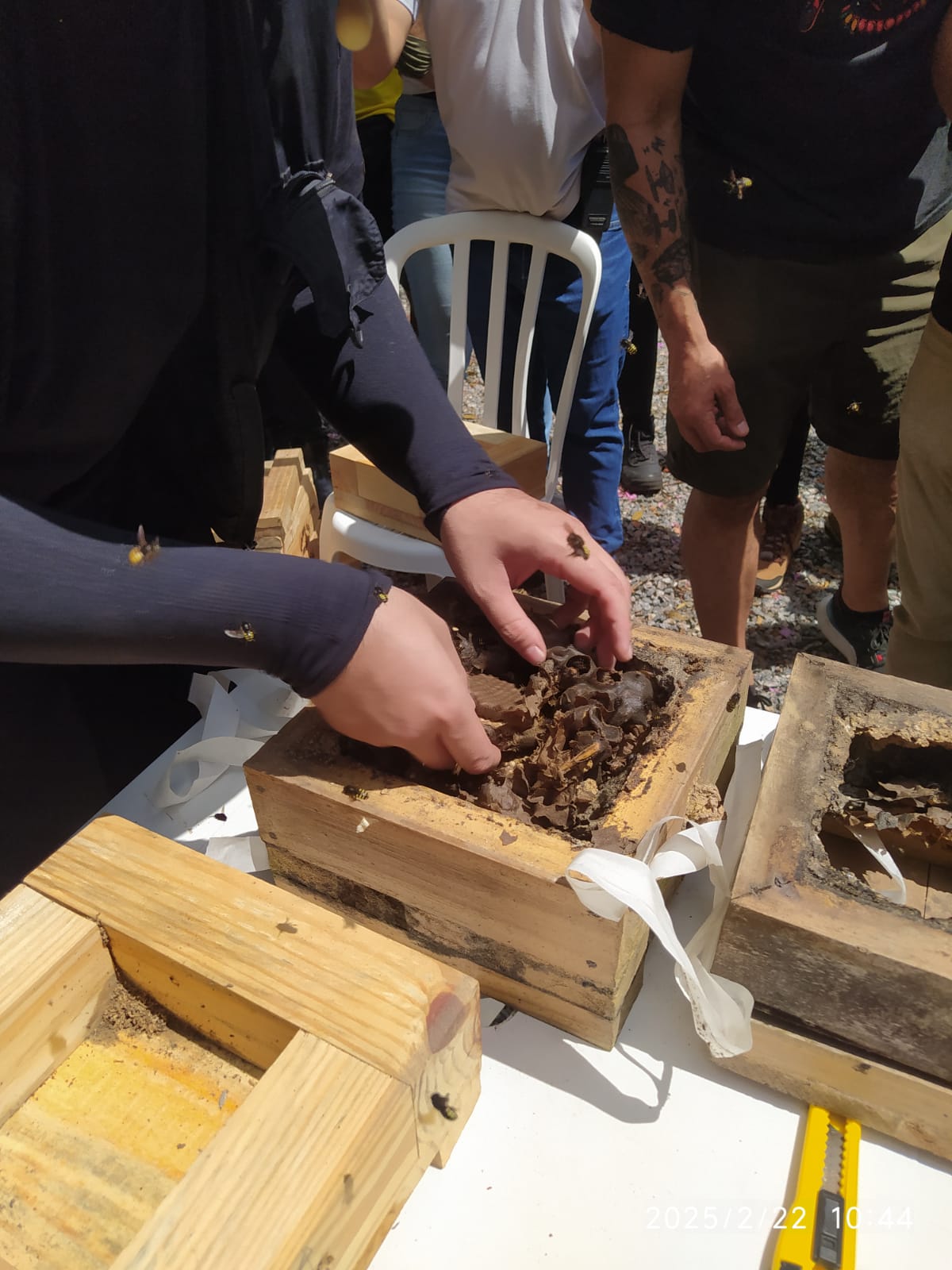 Durante as demonstrações, os alunos receberam orientações detalhadas sobre o funcionamento das caixas e a identificação do mel maduro. No trato das abelhas Jataí, com manejo de transferência de isca para a caixa, foi demonstrado o procedimento após a isca permanecer habitada por pelo menos 60 dias.