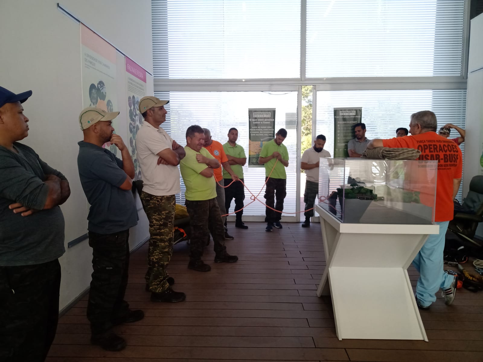 O programa envolveu duas aulas, uma teórica e outra prática. A instituição escolhida para aplicar o treinamento foi a Organização Não Governamental (ONG) Bombeiros Unidos Sem Fronteiras (BUSF). De acordo com Reinaldo Macabel, “a questão da altura nos faz pensar que em caso de necessidade, algo relacionado a salvamento ou resgate, teremos o preparo para fazer uso de várias técnicas, até mesmo com o uso de rapel no parque. Assim, podemos proporcionar aos visitantes mais segurança, com autonomia para lidar com todo o tipo de situação. Somos capacitados, inclusive, para proporcionar a nossa própria segurança no dia a dia”.